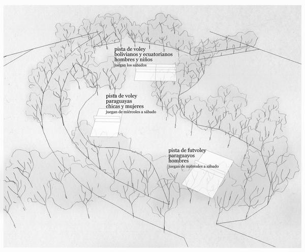 La estrategia de intervención pretende iluminar y dar visibilidad a la red de apoyo mutuo de los colectivos latinoamericanos que utilizan el espacio del parque como un lugar de encuentro y socialización en torno al juego de voley y pikivoley. El objetivo e