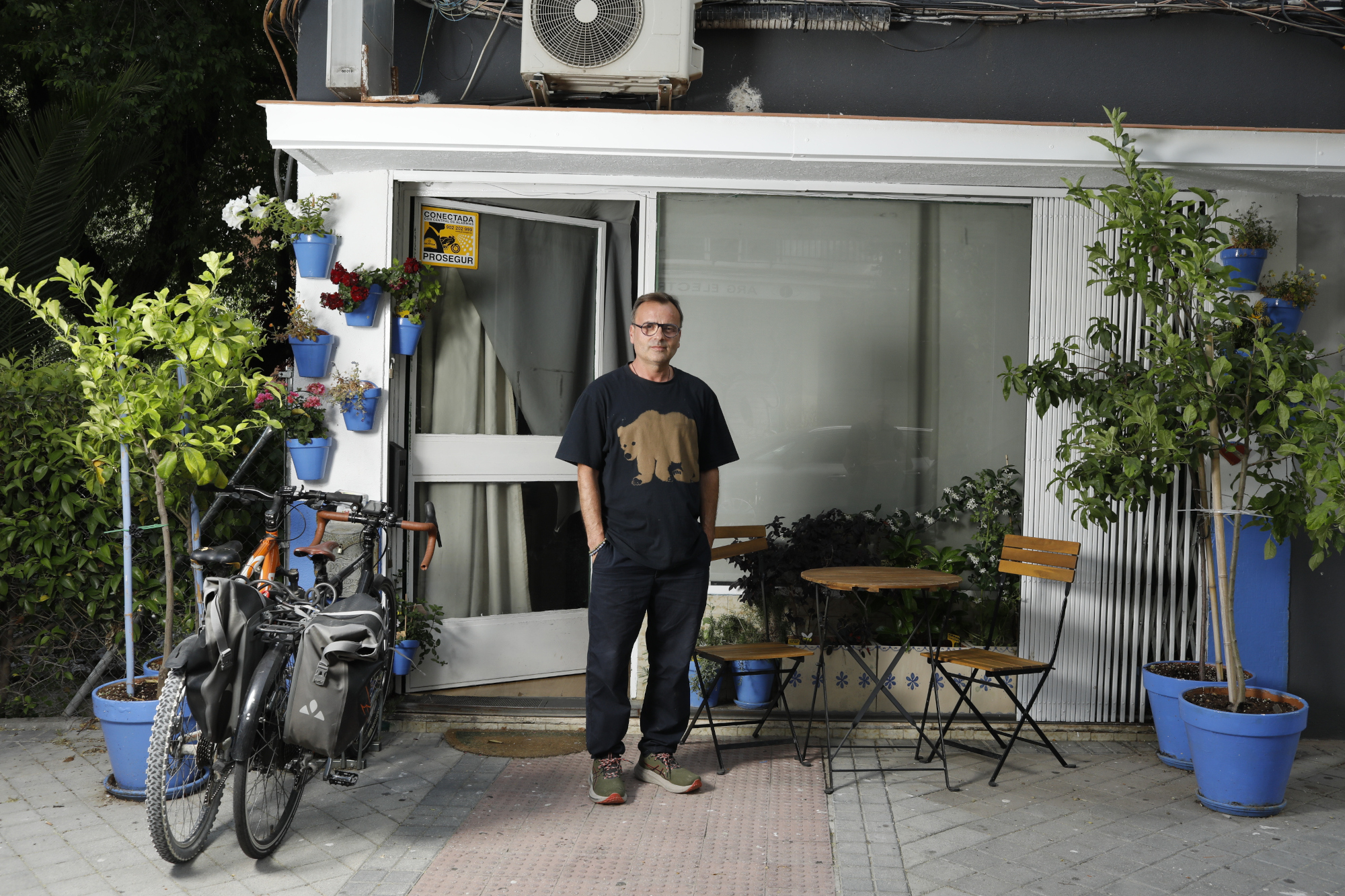 Si das con ella y la puerta está entreabierta, pasa. Dentro estará Javier sentado en una mesa, con semblante sereno. O quizás esté esquejando o a punto de salir a regar las macetas colgantes de la fachada.