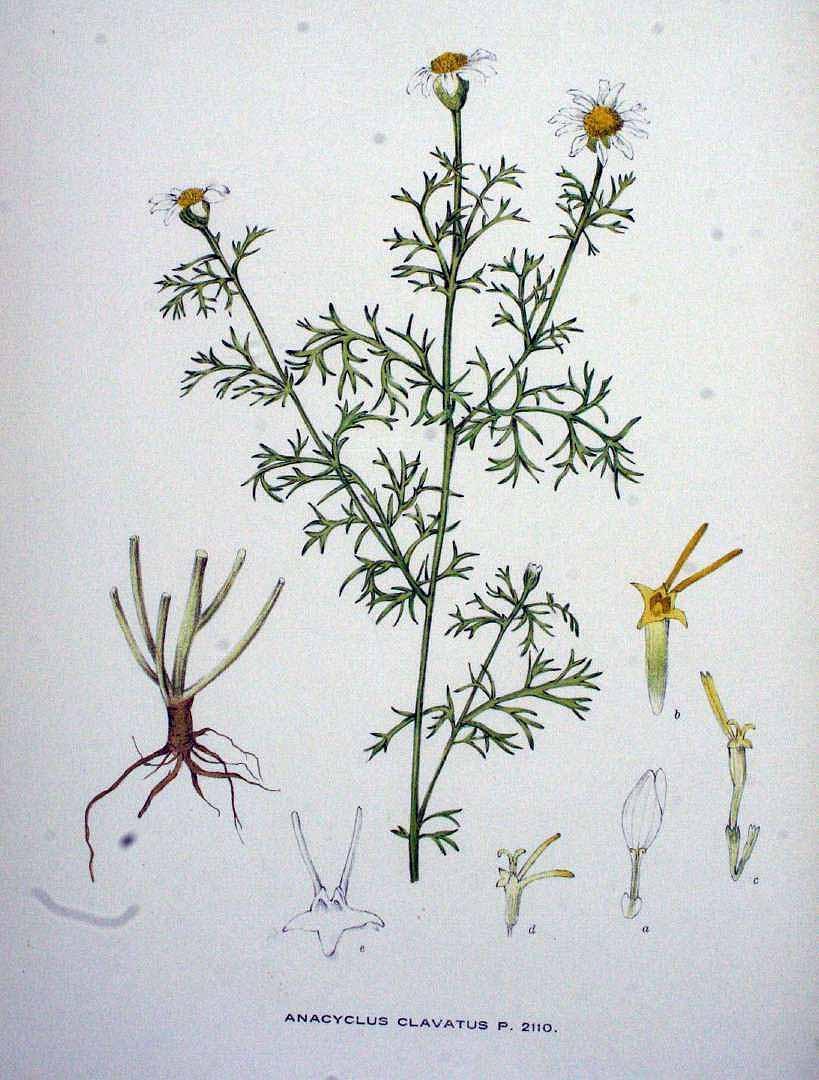 La Anacyclus clavatus tiene varios usos medicinales y culinarios. Se le atribuyen propiedades antiinflamatorias, antiespasmódicas, digestivas, carminativas y vulnerarias. Se utiliza para tratar problemas gastrointestinales, cólicos, flatulencias, diarreas, úlceras, gastritis y parásitos intestinales. También se emplea para aliviar dolores reumáticos, musculares, menstruales y de cabeza. Además, se usa para cicatrizar heridas, quemaduras, llagas y eczemas. Para aprovechar sus beneficios se puede preparar una infusión con las flores secas o frescas, o aplicar un emplasto con las hojas machacadas.